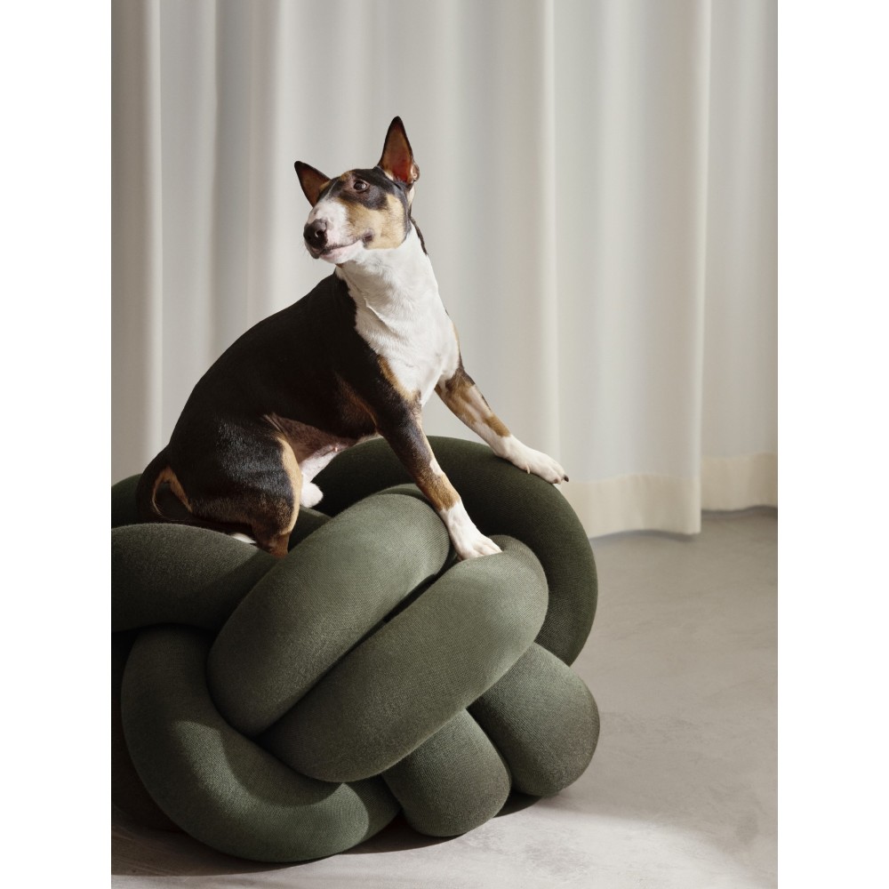 Das Sitzkissen Knot von Ragnheidur Sigursdottir ist eine Fantasieform, die von Knoten, Stricken und der Erforschung skulpturaler Formen anstelle gewöhnlicher Muster inspiriert ist. Es funktioniert zweifellos als Sitzkissen, ist aber auch ein Kunstwerk. Man kann sich darauf stützen, darauf sitzen, sich darauf entspannen und es bricht die Hierarchien bei Gesprächen auf.
