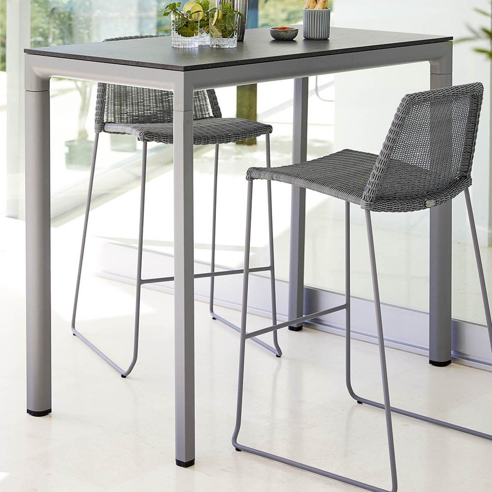 Cane-line ist eine dänische Designermarke, die uns sowohl Außen- als auch Innenmöbel anbietet. Um Ihnen die beste Lebensqualität im Außen- und Innenbereich zu bieten, legt Cane-line Wert auf die Qualität der verwendeten Materialien und den Komfort der Möbel. Cane-line hat diese hellgrauen Barstühle entworfen, die sich ideal für Ihre Abende, Aperitifs und Mahlzeiten eignen. Diese Stühle sind langlebig, praktisch und stilvoll. Perfekt für den Außenbereich.