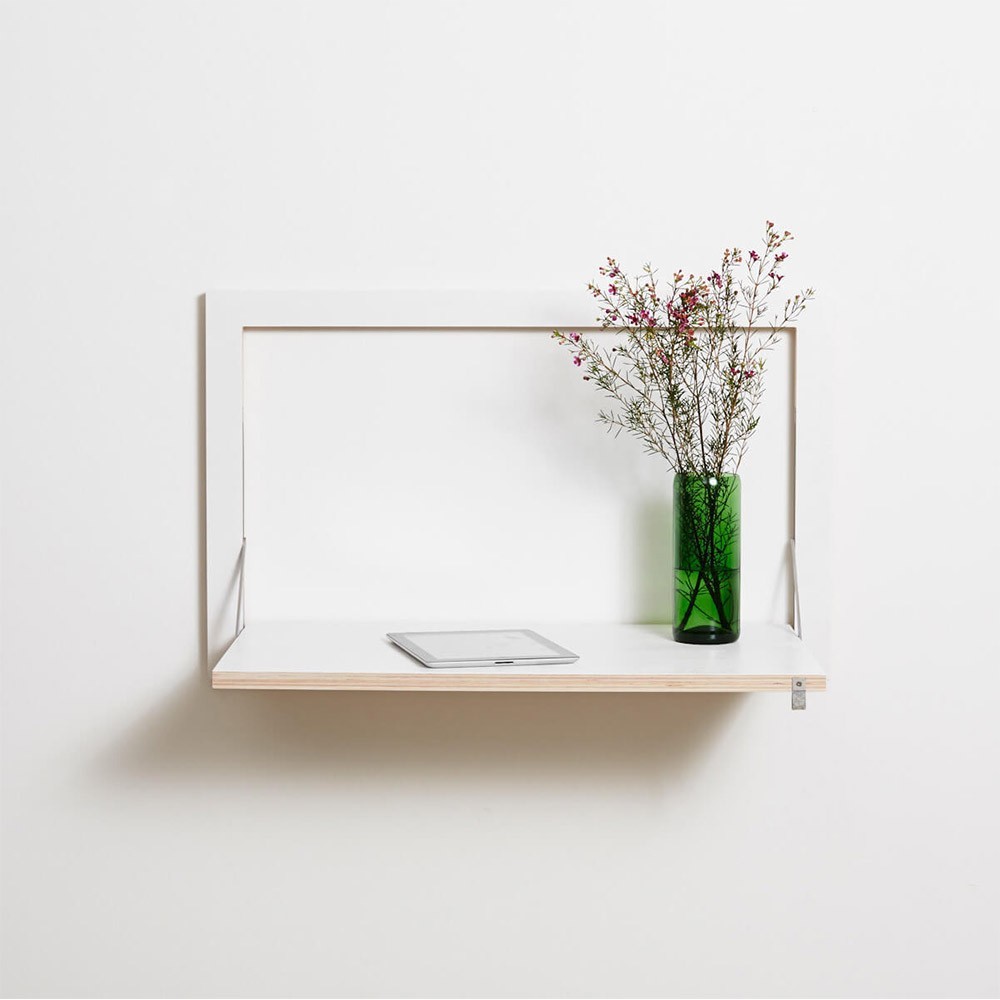 Funktionell und diskret ist der Fläpps Klappwandschreibtisch ideal für kleine Wohnräume! Es passt sich Ihren Wünschen und Bedürfnissen an: eine sitzende oder stehende Arbeitsstation, abhängig von der Höhe, in der Sie es an der Wand befestigen.