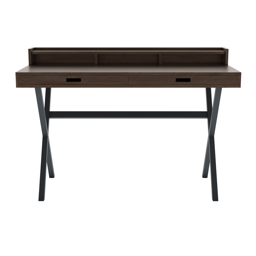 - Schreibtischkorpus aus MDF mit hochveredeltem Walnussfurnier | Gestell aus Metall, matt lackiert