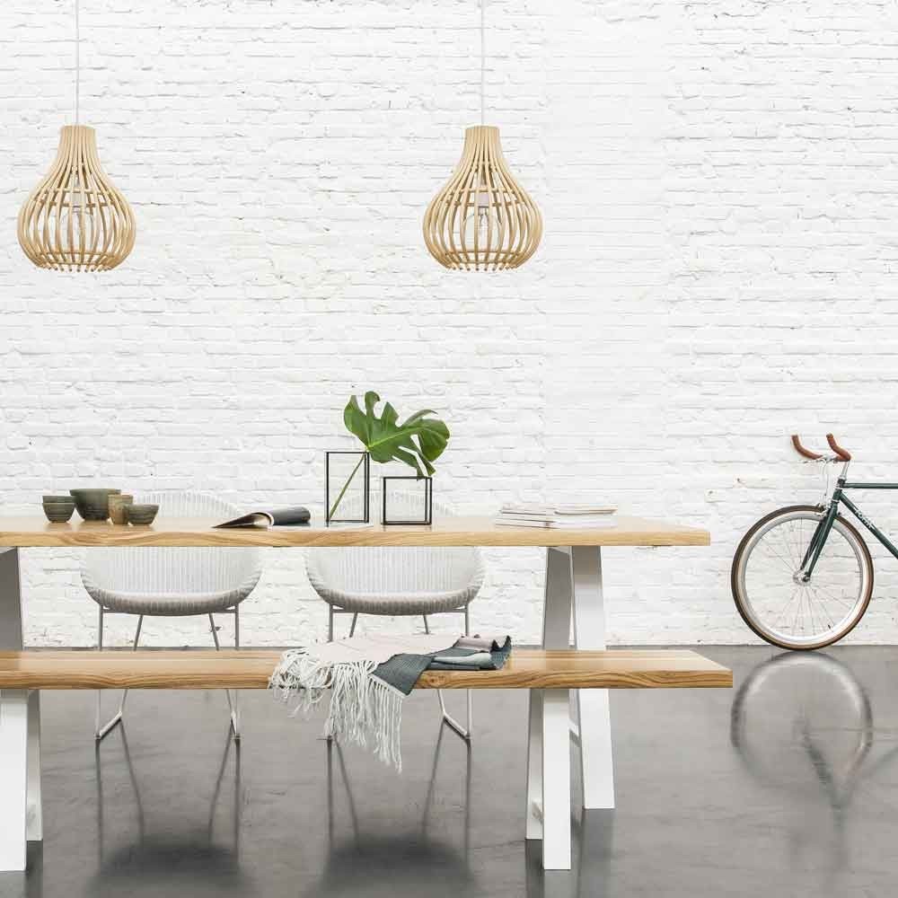 - Tischplatte aus massiver Eiche mit schrägem Rand | Beine aus pulverbeschichtetem Stahl