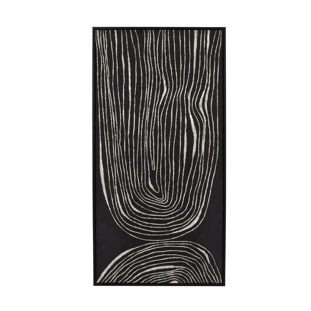 Unsere Wandkunstkollektion Sestri besteht aus drei gerahmten Leinwandbildern, die schwarz bemalt und mit einem organischen Muster aus weißer Strukturfarbe veredelt sind, die derzeit in der Welt der Innendekoration sehr angesagt ist. DieLeinwandbilder Sestri werden Ihre Wände im Handumdrehen aufwerten.