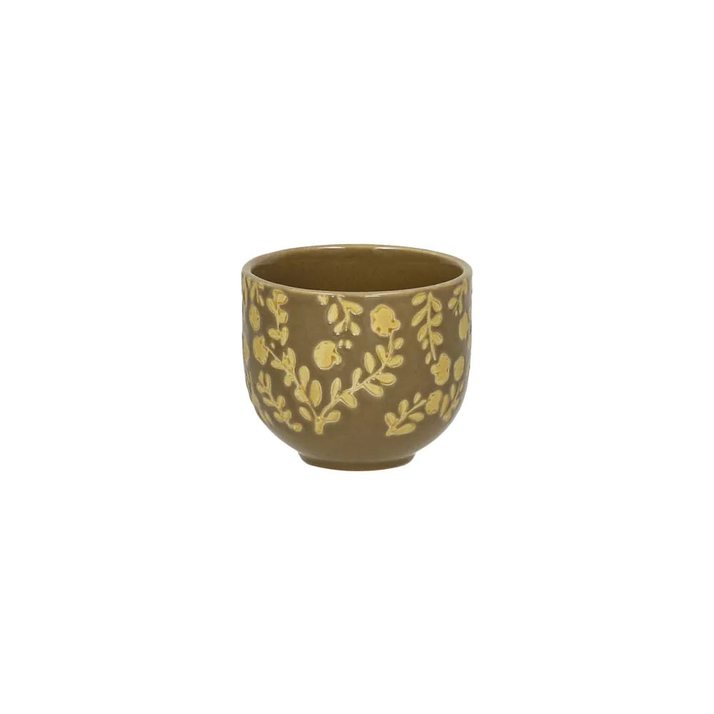 Unsere Romance-Kollektion verleiht jeder Einrichtung mit ihren zarten abstrakten Blatt- und Blumenmustern einen romantischen Touch. Die Illustrationen wurden vor dem Emaillieren mit einer wachsresistenten Schicht überzogen. Diese Methode verhindert, dass die Glasur an den wachsüberzogenen Teilen haftet, wodurch kontrastreiche Muster und Texturen entstehen. Das Ergebnis ist ein dekoratives Stück, das die glatte, glänzende Oberfläche von glasiertem Porzellan mit den unberührten, matten Bereichen kombiniert. Das glasierte Porzellan ist splitterfest, kratzfest und fleckenresistent. Zögern Sie nicht, es in den Ofen, die Mikrowelle oder die Spülmaschine zu stellen.