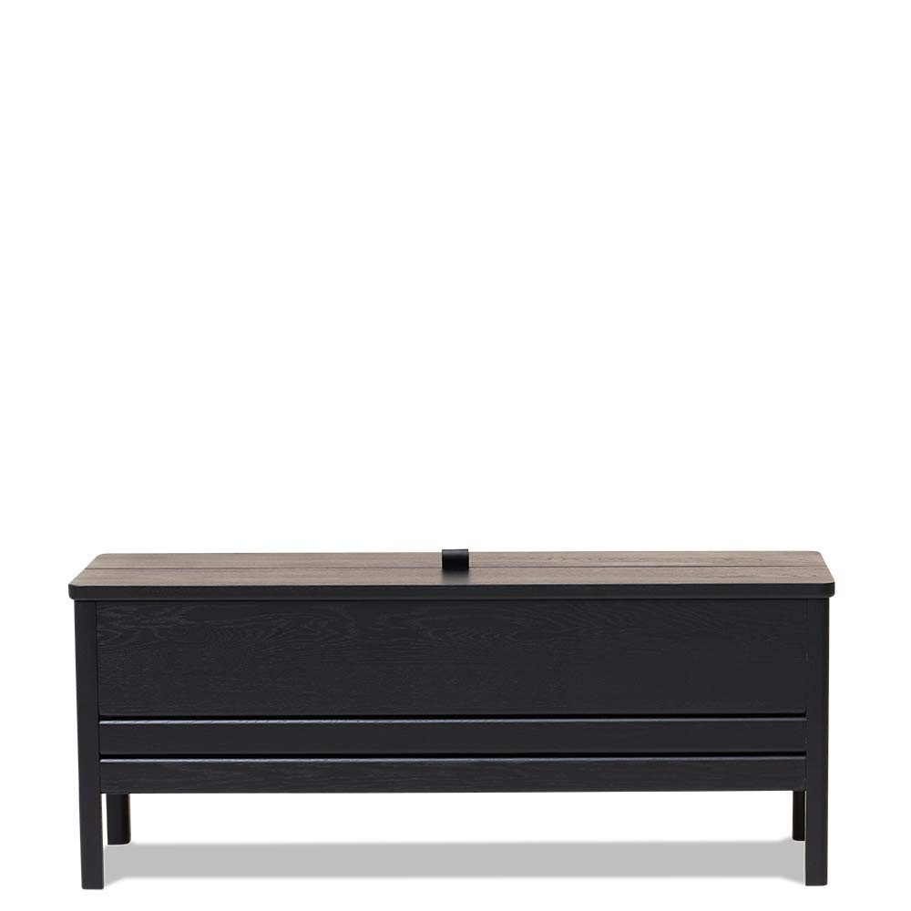 Eine Line Aufbewahrungsbank ist eine aktualisierte Version der klassischen Aufbewahrungsbank - hier trifft Funktionalität auf eine schlichte Form. Eine solide und vielseitige Bank mit leicht reduzierten Abmessungen und minimalistischen Merkmalen. Sie ist praktisch mit einem großen Stauraum, der aus zwei getrennten Fächern besteht. Der Deckel wird über einen kleinen Ledergriff angehoben und bei der Benutzung durch die Konstruktion an Ort und Stelle gehalten.