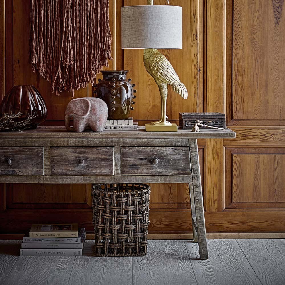 Der Konsolentisch Camden von Bloomingville ist aus wiederverwertetem Holz gefertigt. Nutzen Sie die praktischen Schubladen zur Aufbewahrung und hängen Sie Innendekorationen an den Tisch.
