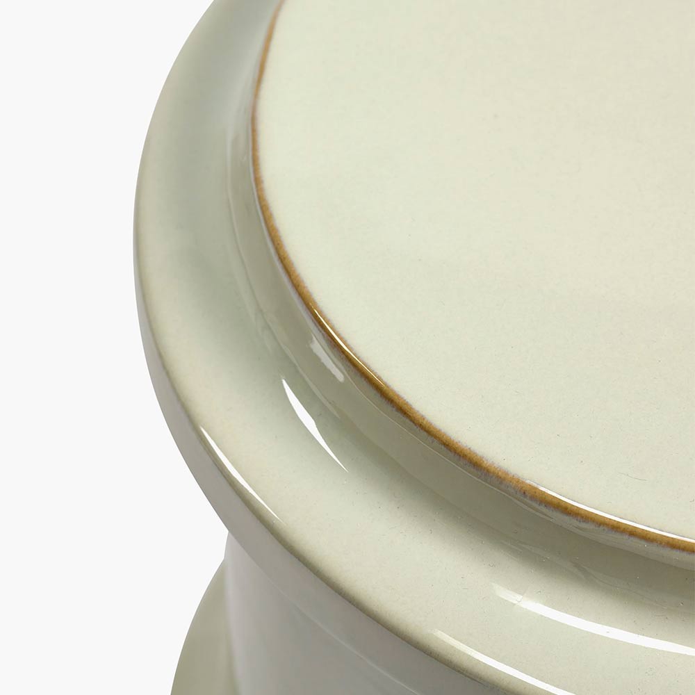 Hergestellt aus glasiertem Steinzeug in einem dezenten Grauton, verleiht dieser Beistelltisch oder Hocker "Pawn" jeder Einrichtung einen Hauch von Eleganz. Die horizontalen Rillen machen ihn nicht nur ästhetisch ansprechend, sondern bieten auch einen Griff für eine mühelose Handhabung.