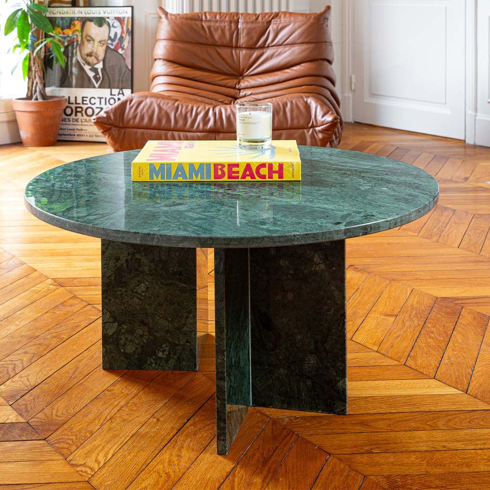 Couchtisch aus Marmor, der von Marion, der Gründerin von Them, entworfen und in Marokko in einer unserer talentierten Partnerwerkstätten zu 100% handwerklich gefertigt wurde.