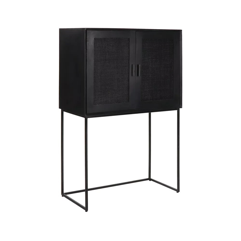 Angela hat elegante Metallbeine, ein Gestell aus massivem Mangoholz und Türen, die mit Bambus gewebt sind. Ein elegantes Möbelstück, das dazu beiträgt, eine heitere und authentische Atmosphäre in Ihrem Zuhause zu schaffen.