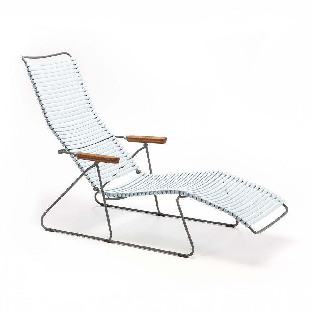 Dieser hübsche Click Lounge-Sessel, entworfen von Henrik Pedersen für Houe, ist ein perfektes Produkt, um Ihren Garten auf die schönste Weise einzurichten. Mit seiner pulverbeschichteten grauen Metallstruktur, seinen breiten, himmelblauen Kunststofflatten, die oben befestigt sind, und seinen Bambus-Armlehnen ist dieser Stuhl leicht und Design. Sein großer verstellbarer Sitz bietet Ihnen optimalen Komfort mit der Gewissheit, dass Sie sich in diesem Stuhl wohl fühlen. Dieser Click-Stuhl ist ideal für Ihren Außenbereich und findet dank seines schlanken und modernen Aussehens leicht seinen Platz. Die Click Lounge Chairs sind in vielen Farben erhältlich und passen sich jedem Äußeren an.