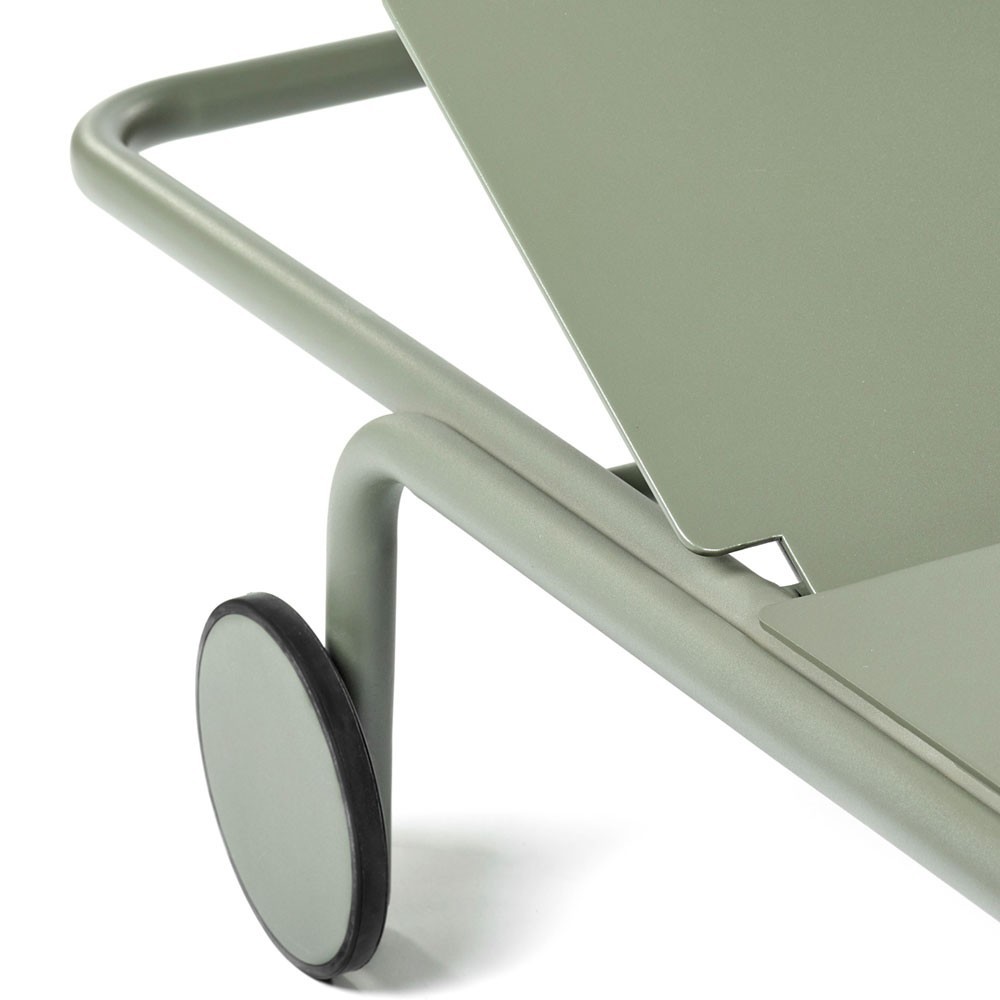 Die Outdoor-Kollektion August von Vincent Van Duysen wird durch eine elegante Chaiselongue bereichert. Charakteristisch für Van Duysens Stil ist die Kreation, die auf ihre Essenz zurückgeführt wurde, ohne ihre Kraft zu verlieren. Erhältlich in pulverbeschichtetem Aluminium in drei Farben: Schwarz, Eukalyptusgrün und Sand.