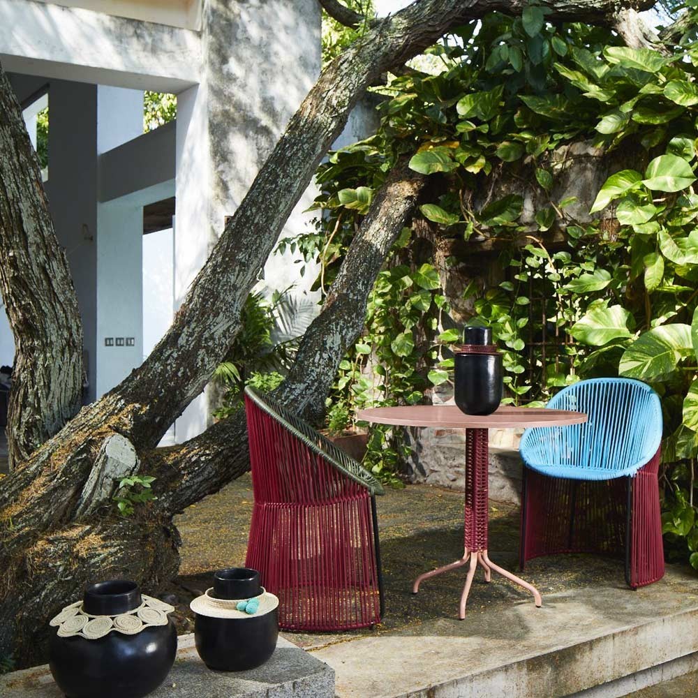 Es ist unmöglich, vom Charme der Stücke von Ames unberührt zu bleiben, kleine handwerkliche Juwelen, die die Schönheit der kolumbianischen Kultur ehren. Entdecken Sie den Stuhl Cartagenas, ein Design von Sebastian Herkner für die Marke Ames. Inspiriert von der Stadt Cartagena, einer lebhaften Küstenmetropole an der kolumbianischen Küste, fängt die Cartagenas-Kollektion das geschäftige Treiben der Stadt ein. Der in Bogotá hergestellte, umhüllende Stuhl hebt das Talent und das Wissen der lokalen Handwerker hervor. In schwarzer oder farbiger Ausführung ist der Stuhl Cartagenas ein elegantes Stück, das Innen- und Außenbereiche veredeln wird.