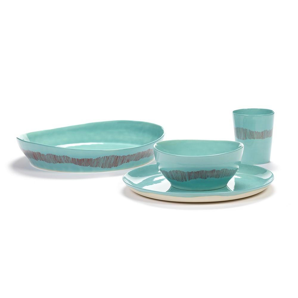 Wenn wir Gäste empfangen, bringen wir immer gerne schöne Gerichte, elegante Sets und originelle Gerichte heraus. Die Feast-Kollektion von Ottolenghi für Serax passt perfekt zu dieser Situation. Letztere präsentiert eine Vielzahl von Produkten mit originellen Farben und Designs, die bei Ihren Gästen einen guten Eindruck hinterlassen. Hier ist diese weiß-blaue Feast Servierplatte mit hohem Rand ideal zum Präsentieren Ihrer Gerichte. Dort können Sie Ihr Fleisch und Ihre Beilagen während des Essens platzieren oder sogar Kuchen und Obst zum Nachtisch. Schöne, große Gefäße müssen immer griffbereit sein, und noch besser ist es, wenn sie modern sind wie die der Feast-Kollektion. Sie sind auch in vielen Farben und Größen erhältlich, um Ihnen eine große Auswahl an Möglichkeiten zu bieten, die Sie jetzt auf unserer Website finden!