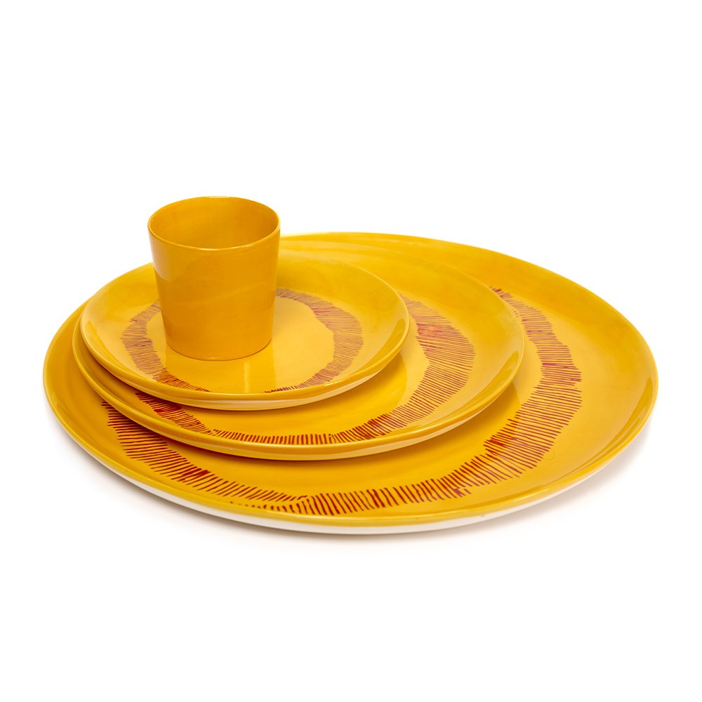 Wenn wir Gäste empfangen, bringen wir immer gerne schöne Gerichte, elegante Sets und originelle Gerichte heraus. Die Festive Tableware Kollektion von Ottolenghi für Serax passt perfekt zu dieser Situation. Letztere präsentiert eine Vielzahl von Produkten mit originellen Farben und Designs, die bei Ihren Gästen einen guten Eindruck hinterlassen. Hier eignet sich dieser gelb-rote Feast Servierteller ideal zum Präsentieren Ihrer Speisen. Sie können kleine herzhafte Kuchen zum Aperitif, Saucen zum Essen oder sogar kleine Süßigkeiten zum Dessert platzieren. Kleine Behälter muss man immer griffbereit haben, und noch besser ist es, wenn sie modern sind wie die der Feast-Kollektion. Sie sind auch in vielen Farben und Größen erhältlich, um Ihnen eine große Auswahl an Möglichkeiten zu bieten, die Sie jetzt auf unserer Website finden!