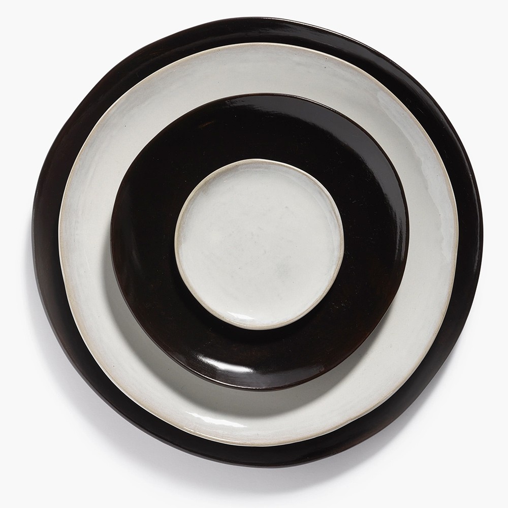 Entscheiden Sie sich für die Teller La Mère, die von Marie Michielssen für Serax entworfen wurden. La Mère, die erste Keramikgeschirrlinie von Marie Michielssen, ist eine liebevolle Ode an die (Groß-)Mutterfigur und an Frauen im Allgemeinen. Jede Form ist einzigartig und handgeformt undalle Stücke werden mit einer gebrochen weißen Glasur oder einem warmen, fast schwarzen Dunkelbraun fertiggestellt . Als dritte Kontrastfarbe wählte Marie ein gewagtes venezianisches Rot.