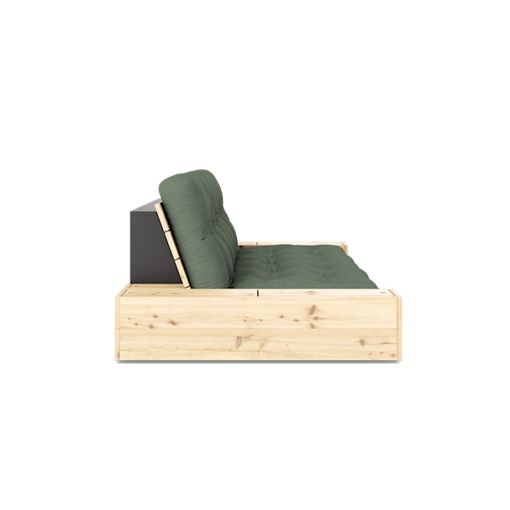 Der Bettrahmen aus FSC®-zertifiziertem Kiefernholz und die dick gepolsterte Futonmatratze sorgen für Komfort beim Sitzen und Liegen und vereinen Funktionalität mit einem Hauch von Luxus.