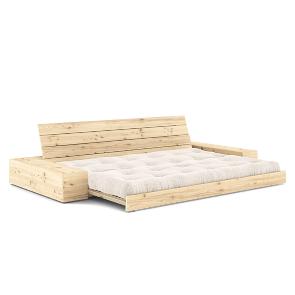 Der Bettrahmen aus FSC®-zertifiziertem Kiefernholz und die dick gepolsterte Futonmatratze sorgen für Komfort beim Sitzen und Liegen und vereinen Funktionalität mit einem Hauch von Luxus.