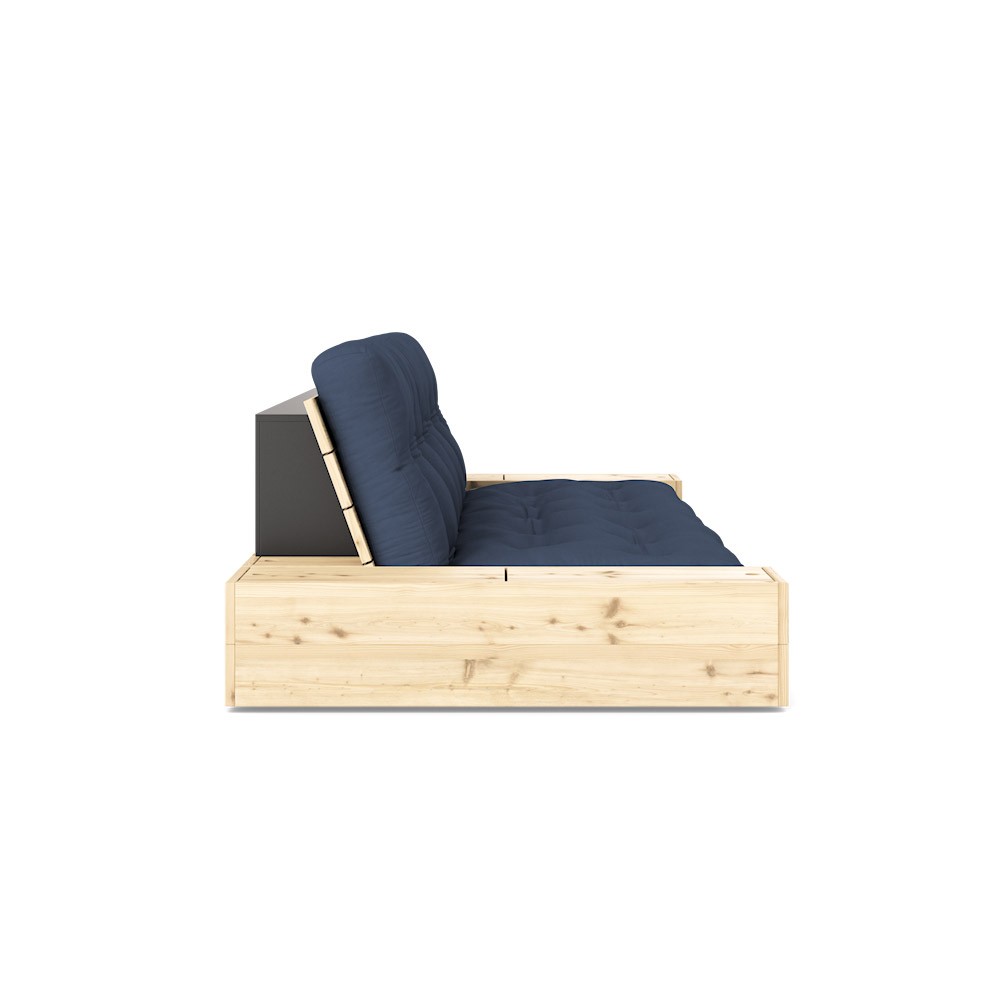 Der Bettrahmen aus FSC®-zertifiziertem Kiefernholz und die dick gepolsterte Futonmatratze sorgen für Komfort beim Sitzen und Liegen und vereinen Funktionalität mit einem Hauch von Luxus.
