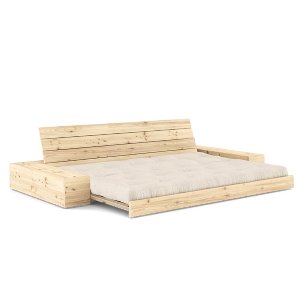 Der Bettrahmen aus FSC®-zertifiziertem Kiefernholz und die dick gepolsterte Futonmatratze sorgen für Komfort beim Sitzen und Liegen und vereinen Funktionalität mit einem Hauch von Luxus.