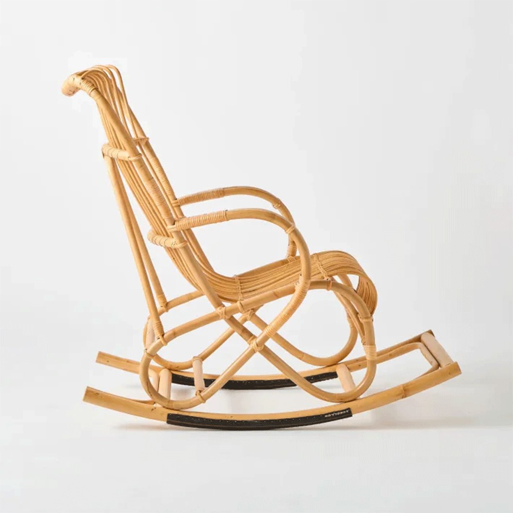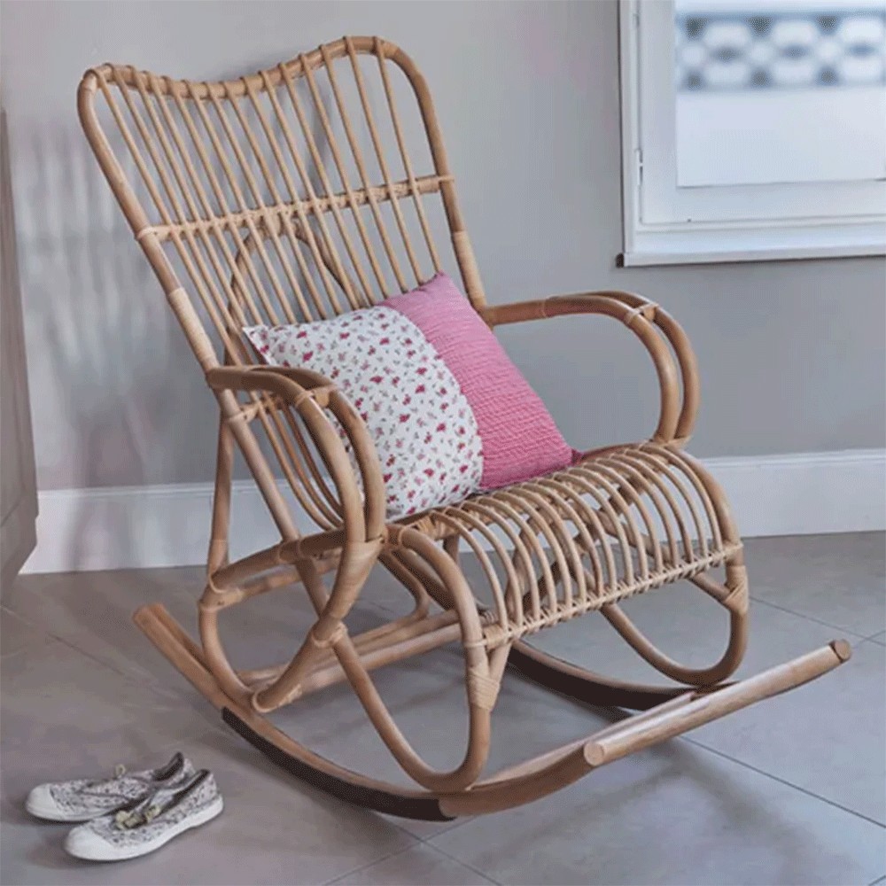 Rattan Vintage 60s Comeback und kehrt auf den neuesten Stand zurück. Leicht, komfortabel und natürlich, diese historischen Möbel, die von Maison KOK neu aufgelegt wurden, sind hier mit Gleitern ausgestattet, um ein sanftes Schwingen zu ermöglichen. Dieser Rattan-Schaukel mit einer hohen Rückenlehne zum Auflegen des Kopfes wird eher ohne Kissen verwendet. Dank der vielen vertikal angeordneten "Netze", die für seinen Komfort ausreichen, können Sie dennoch ein Kissen hinzufügen, um es noch gemütlicher zu machen . Sie existieren in verschiedenen Farben.