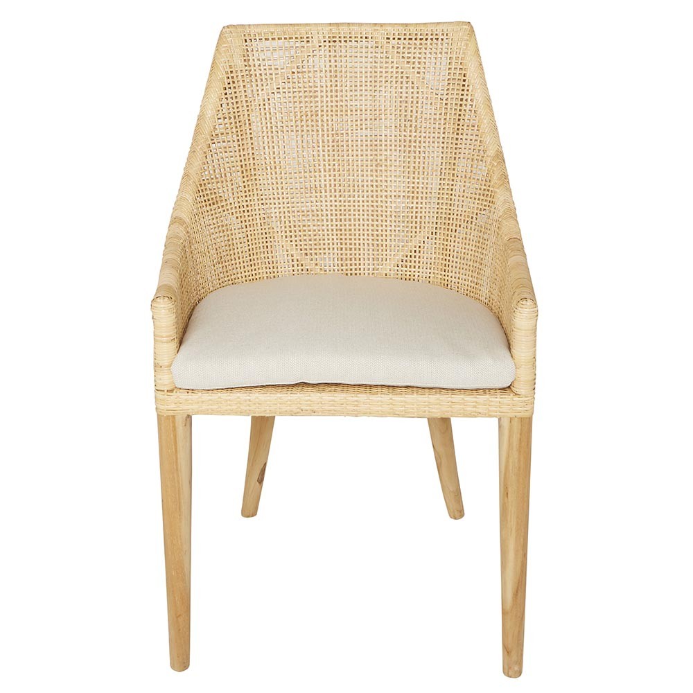Dieser Saigon Rattan Tischsessel kombiniert Stärke dank seiner natürlichen Teakholzstruktur und Raffinesse dank seiner durchbrochenen Rattanschienenbindung. Dieser Stuhl ist das Ergebnis einer wunderschönen Arbeit, die vollständig von Hand ausgeführt wurde. Dieser Saigon-Rattansessel kann an einem Tisch mit Blick auf einen Schreibtisch, als Sitzerhöhung im Wohnzimmer und auf einer Veranda verwendet werden und verleiht Ihrem Interieur ein natürliches und zeitgemäßes Gefühl.