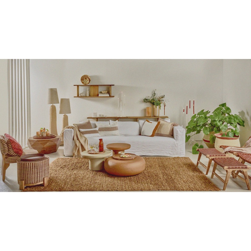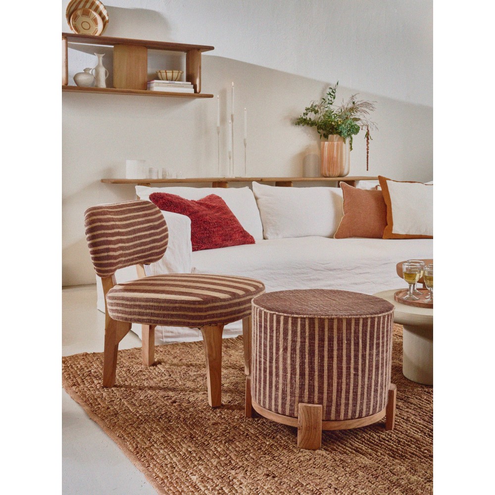 Brindisi, eine ethnische Kollektion mit handgefertigten Details. Die handbestickten Kissen sind mit Federn gefüllt, wodurch sie sich sehr weich anfühlen. Sie haben außerdem einen Doppelcharakter: eine Seite ist bestickt, die andere handbemalt. Das Textil auf dem gemusterten Sitzsack ist ebenfalls handbemalt. Und für diejenigen, die lieber subtil bleiben möchten, bieten wir ein neutrales Set an, das vollständig mit einem weichen, beigefarbenen Bouclé-Stoff bezogen ist. Die Brindisi-Kollektion bringt eine harmonische Mischung aus kulturellen Einflüssen und handwerklichem Können in Ihr Zuhause.