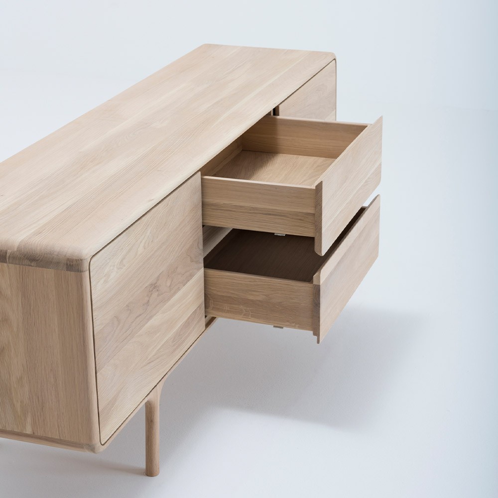 Lassen Sie sich von der Schönheit des Fawn-Buffets verführen. Mit seinen glatten Oberflächen und fließenden Linien ist es ein wahres Vergnügen für die Augen und für die Hände! Das Sideboard besteht aus 2 Schranktüren und 2 Schubladen mit einem Soft-Closing-System zum Vergnügen der Ohren! Sie haben auch mehrere Kerben, um Kabel aller Art zu verstecken, wenn Sie Ihre elektronischen Geräte dort platzieren möchten, um sie beispielsweise aufzuladen. Auch in 150 cm Version erhältlich.