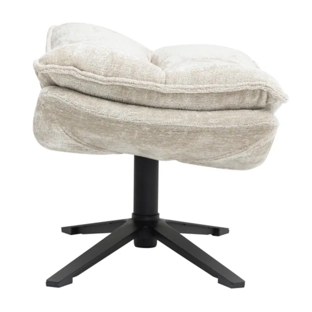 Die Brava-Fußstütze erweitert auf elegante Weise den Komfort des Brava-Drehsessels, indem sie eine weiche Stütze für Ihre Beine bietet und gleichzeitig die raffinierte Ästhetik des Sessels vervollständigt. Bezogen mit einem harmonischen beigen Stoff, fügt sie sich nahtlos in ein Wohnzimmer oder eine Sitzecke ein, während ihre robuste Struktur Stabilität und Qualität garantiert. Diese Fußstütze ist ideal, um sich nach einem langen Tag zu entspannen, und ermöglicht es, ein zusammenhängendes, funktionales und stilvolles Ensemble zu schaffen.