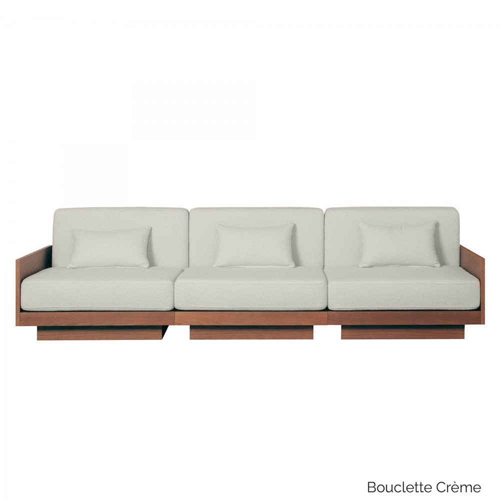 Entdecken Sie das wunderschöne Sofa Georges, das eine Ästhetik von schöner Schlichtheit aufweist. Es lässt sich leicht mit jeder Einrichtung kombinieren und sein Design ist auf Langlebigkeit ausgelegt. Die Verbindung der modularen Elemente erfolgt mithilfe eines Verbindungsstücks aus Holz, das (sehr einfach) unter den Modulen positioniert werden kann.