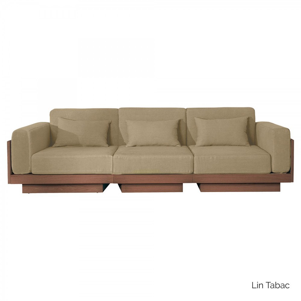 Sofa Georges Le Confortable 3-Sitzer Finish Nussbaum - Leinen Tabak