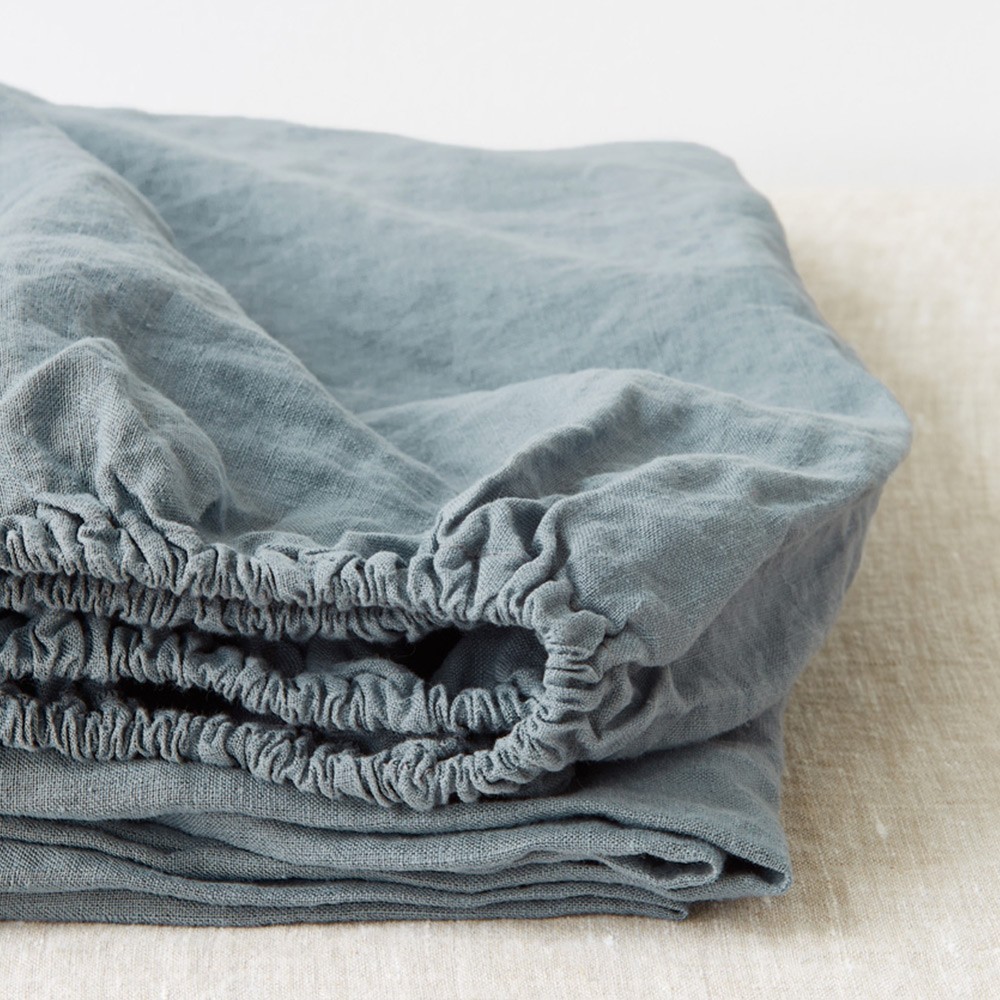 Spannbetttuch aus blauem Nebelleinen by Linen Tales