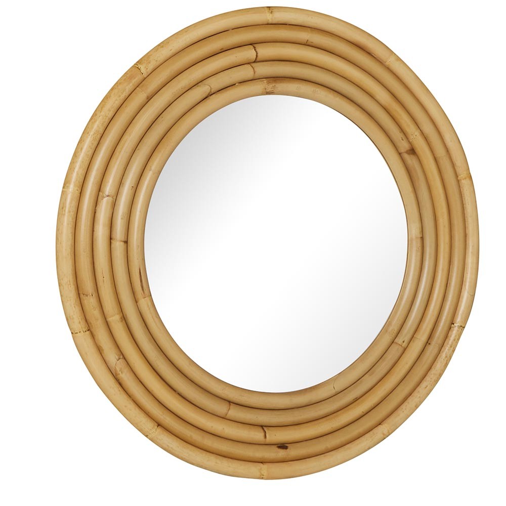 Inspiriert von den Rattanlinien der 1970er Jahre nimmt die Riviera-Kollektion aus natürlichem Rattan sehr spezifische grafische Codes auf: Rattan mit großem Durchmesser, einfache und raffinierte Formen, Zuckerrohr für die Bodenplatte. Kok Maison bevorzugte eine "natürliche" Behandlung, die die Riviera-Kollektion auf den neuesten Stand bringt: Das Rattan ist halb geschält, um die Knoten teilweise sichtbar zu machen, eine leichte Bernsteinfarbe, um das Ganze einheitlich zu machen, und ein transparenter Satinlack. Dieser zeitlose Rattanspiegel eignet sich perfekt für eine Veranda oder einen Wintergarten, verbunden mit einem modernen Interieur. Er erwärmt den Raum mit seiner blonden Farbe und sauberen Kurven.