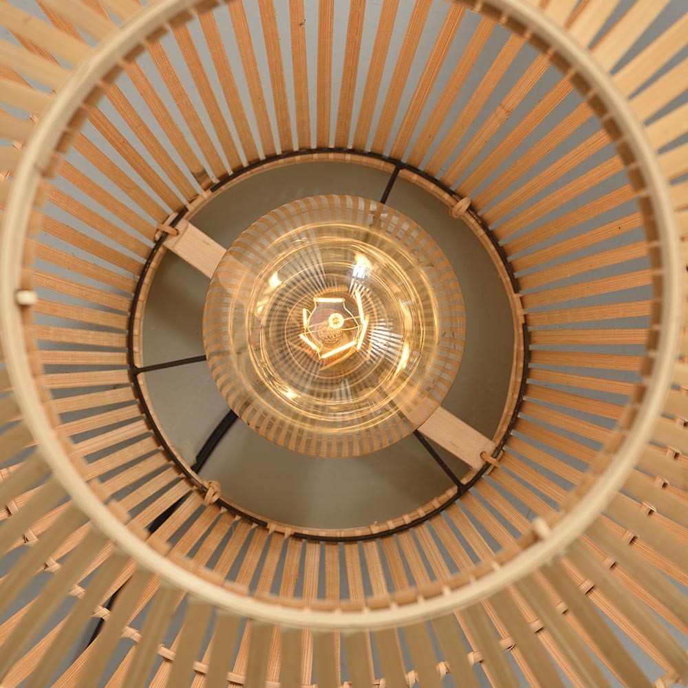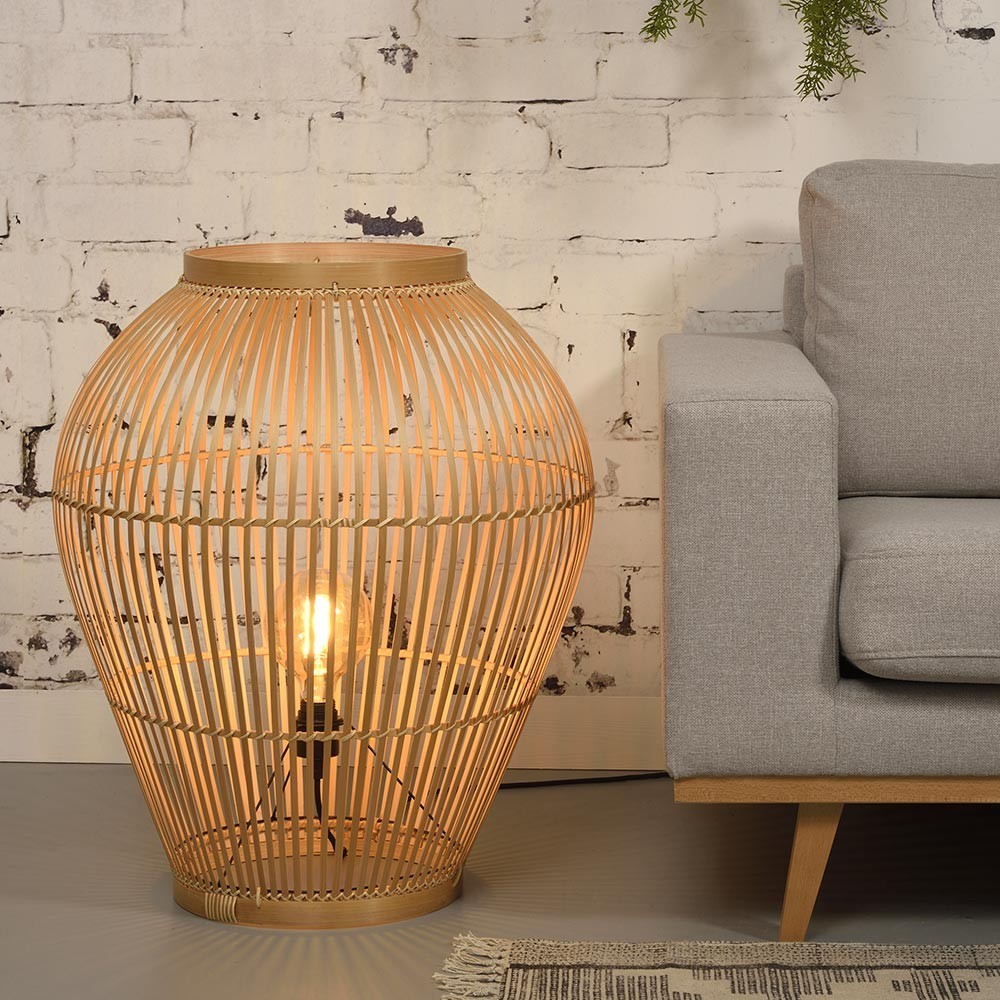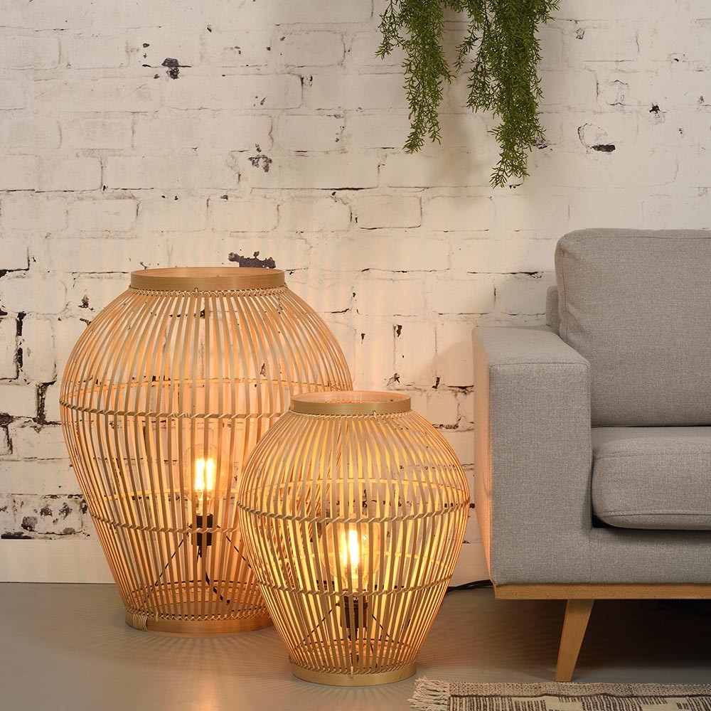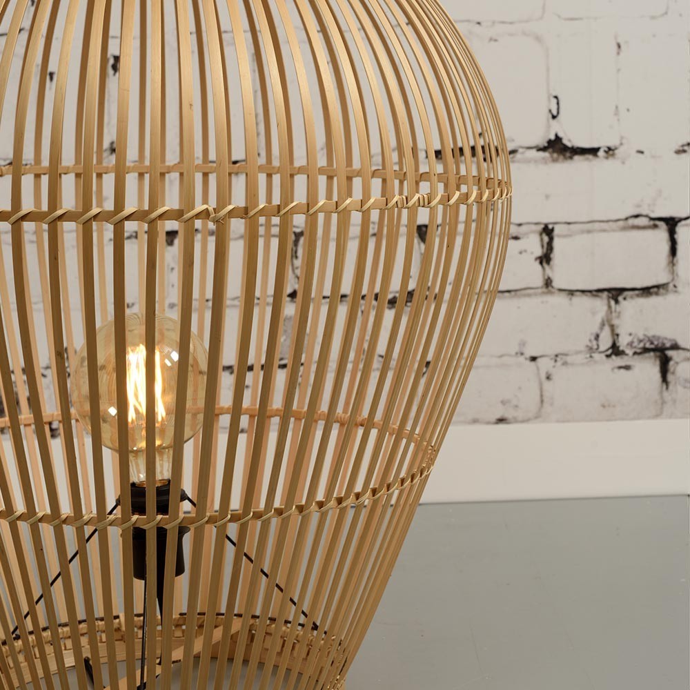 Die von Good & Mojo entworfene Tuvalu Bambus L Tischlampe passt perfekt in einen Eingang, ein Wohnzimmer oder ein Schlafzimmer. Das Weben von Bambus und seine organische Form machen es zu einem außergewöhnlichen Stück.