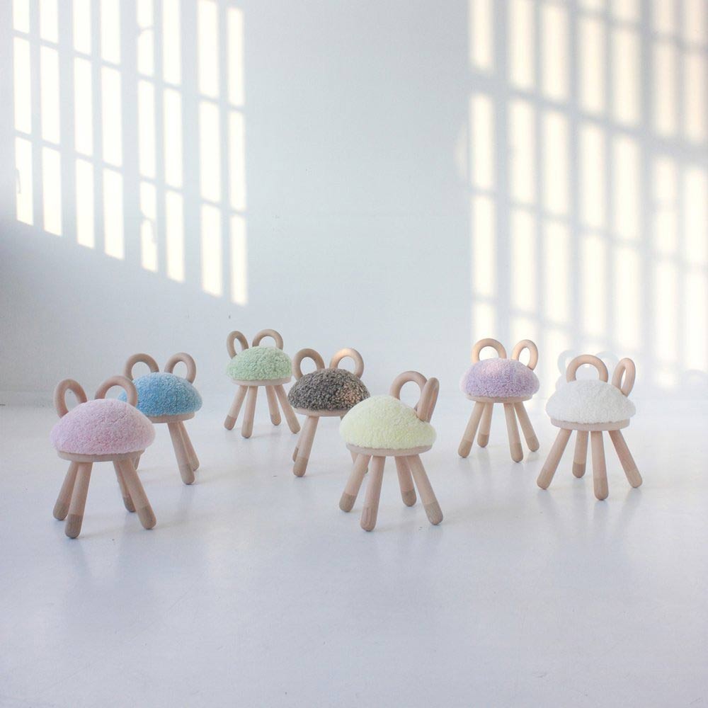 Der Stuhl Sheep ist ein verspieltes Kinderstück mit einem einladenden skulpturalen Design. Er ist aus europäischem Buchen- und Eichenholz gefertigt und hat eine weiche Sitzfläche aus falschem Schafsfell.