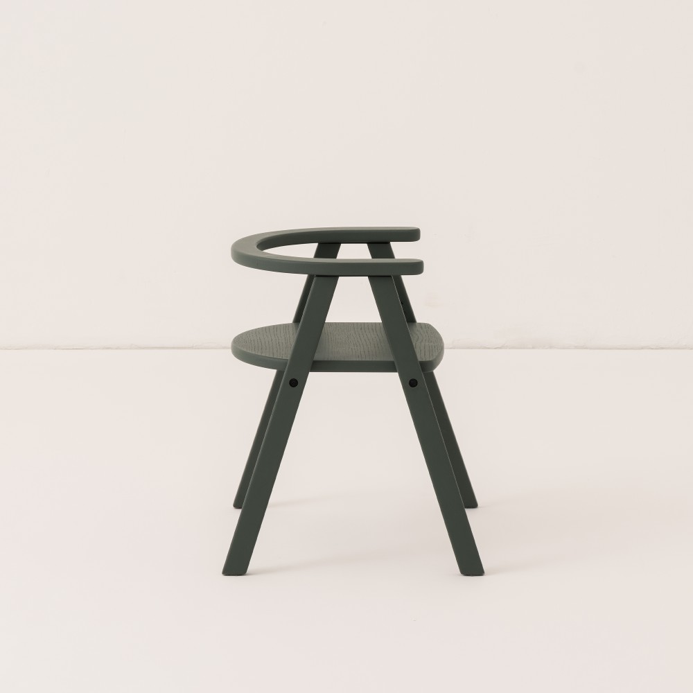 Ein Stuhl mit schlichtem und zeitlosem Design, perfekt geeignet für Kinder von 3 bis 6 Jahren. Wir lieben die abgerundeten Armlehnen.