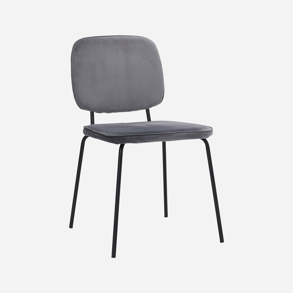 Der Stuhl Comma von House Doctor hat einen coolen, minimalistischen Look mit einem grauen Stoff, der einen Kontrast zum schwarzen Stahlrahmen bildet. Der Stuhl ist schlicht, zeitlos und passt in jedes moderne Zuhause, egal wie Ihr Esstisch aussieht.