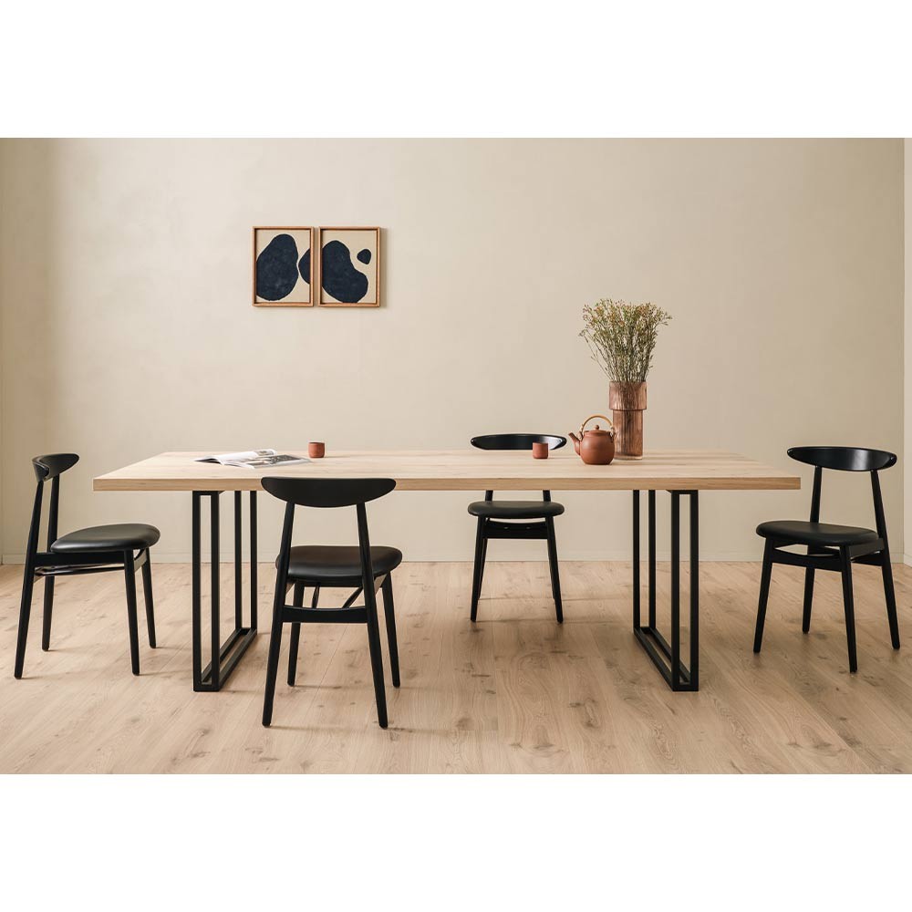 Der Esszimmerstuhl Teo mit festem gepolstertem Sitz bietet neben klaren Linien und wunderschön gestaltetem Holz auch einen außergewöhnlichen Sitzkomfort. Erhältlich in massiver Eiche oder Buche.