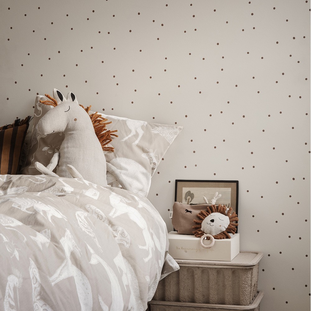 Diese hübsche Dot-Tapete von Ferm Living ist mit ihren gepunkteten Mustern und sanften Farben von klassischem und modernem Art Deco inspiriert. Diese Tapete wurde mit hochwertigem, intelligentem Vliespapier und Tinte auf Wasserbasis entworfen und ist dann ein haltbares und einfach aufzuhängendes Produkt. Ideal im Kinder- oder Erwachsenenzimmer oder im Wohnzimmer, schmückt es Ihre Wände mit Weichheit und Eleganz. Was Sie kombinieren können, um Harmonie und Geometrie in Ihrem Zuhause für mehr Modernität zu kombinieren.
