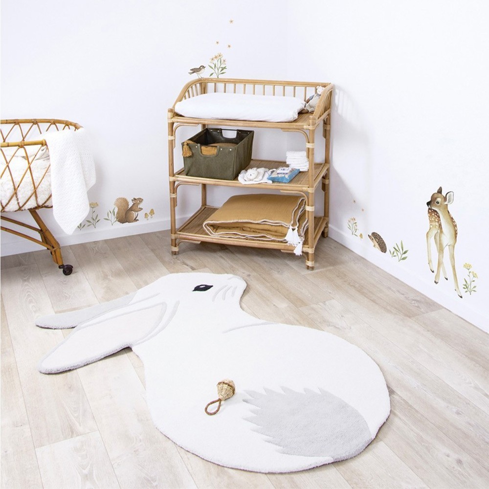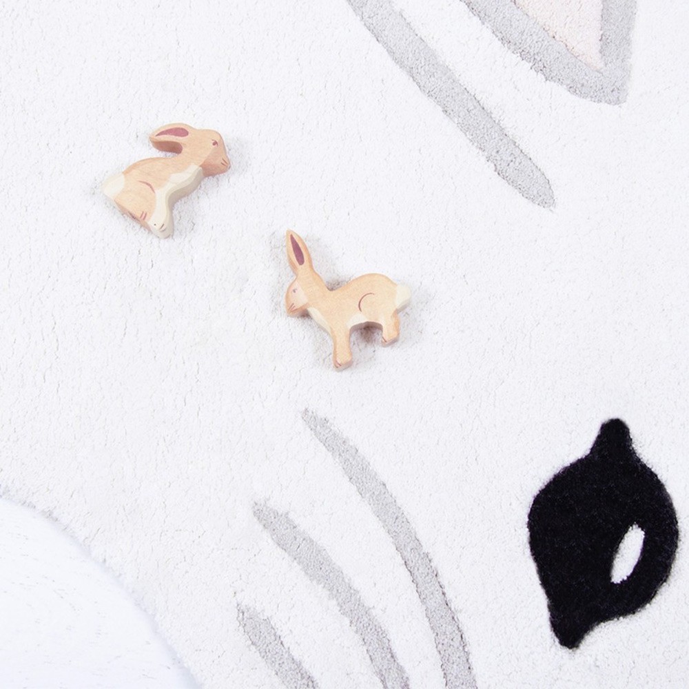 Entdecken Sie den wunderschönen Teppich aus der Kollektion Forest, getuftet 100 oton, mit seiner Hasenform. Erwird Ihrer Einrichtung eine sanfte Note verleihen.Dieser weiche und farbenfrohe Teppich mit seiner originellen Form wird die Dekoration Ihres Kindes einzigartig machen.