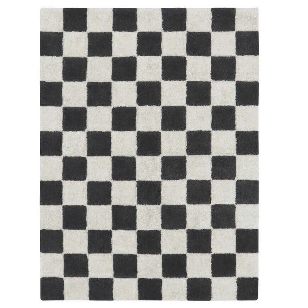 Dieser waschbare Baumwollteppich von Lorena Canals weist ein Design auf, das von Vintage-Küchenfliesen im Schachbrettmuster inspiriert ist. Zwischen den Fugen der Fliesen erscheint der nackte Stoff, der aus einer Mischung der RugCycled®-Basis und natürlicher Baumwolle hergestellt wird. Dieses traditionelle Muster mit einem modernen Touch bietet einen weichen Unterfuß im Babyzimmer, Kinderzimmer und der allgemeinen Wohnraumgestaltung.