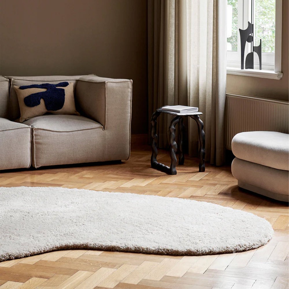 Entdecken Sie den Wollteppich Forma von Ferm Living, der aus weicher neuseeländischer Wolle getuftet ist und eine längere Florhöhe hat. Verwenden Sie den Wollteppich Forma, um Ihrem Wohn- oder Schlafzimmer ein subtiles, künstlerisches und taktiles Detail zu verleihen.