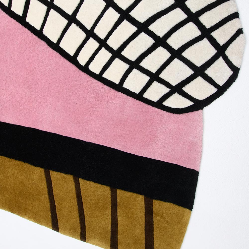 Mit seiner vibrierenden Mischung aus Pink, Senf, Schwarz und tiefem Bordeauxrot verbindet der Teppich STARILINE geometrische Elemente mit organischer Fluidität. Sein schwarzes Karomuster sorgt für Kontrast, während die sich überlagernden Farben seine Tiefe und Originalität hervorheben.