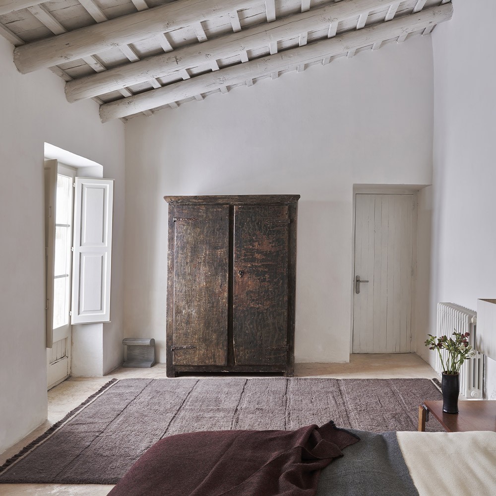 Dieser schöne braune Steppenteppich von Lorena Canals ist aus Schafwolle handgefertigt und gehört zur großen Kollektion von Les Moutons du Monde. Letztere besteht aus vielen handgefertigten Teppichen mit Schafwolle aus aller Welt. Diese Kollektion bietet strapazierfähige, ungefärbte, ungiftige und waschbare Teppiche. Dieser Teppich in nüchterner brauner Farbe ist ein großartiger Klassiker, den Sie in Ihrem Zuhause finden können. Seine kurzen und extra kurzen Haare, die gerade Bänder bilden, in Kombination mit seinen seitlichen Fransen verleihen uns ein Gefühl von natürlicher Weichheit. Ideal in einem Wohnzimmer, einem Schlafzimmer oder einem Büro, findet dieser Teppich seinen Platz perfekt in Ihrem Zuhause, indem er dem Raum eine gemütliche Note verleiht.