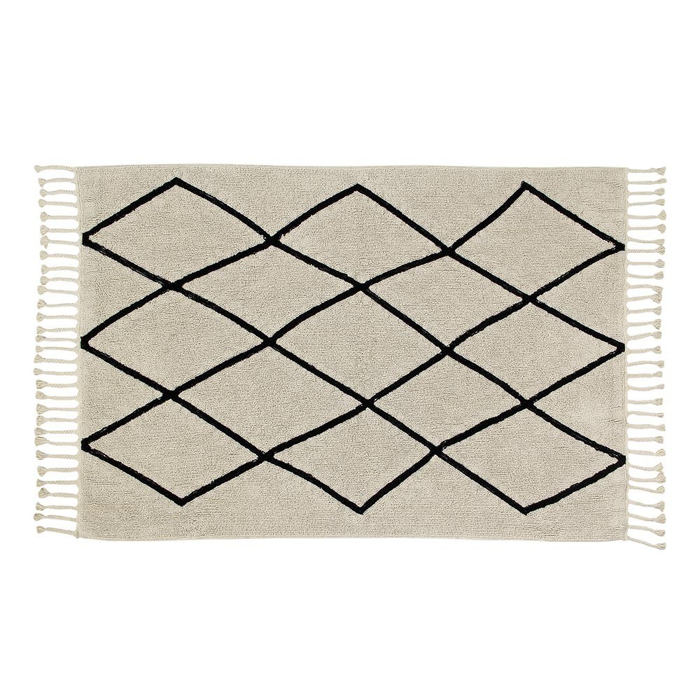 Lorena Canals bietet eine große Auswahl an waschbaren Baumwollteppichen. Dieser waschbare beige Berber Teppich besteht aus Baumwolle und mit ungiftigen Farbstoffen. Es ist perfekt für Ihr Wohnzimmer oder Schlafzimmer. Die Muster in Form von schwarzen Diamanten verleihen diesem Teppich Eleganz.