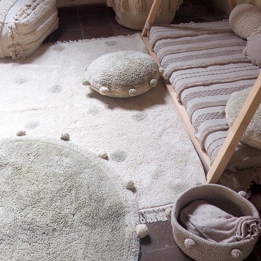 Waschbarer Teppich Hippy Dots natürlich & oliv by Lorena Canals