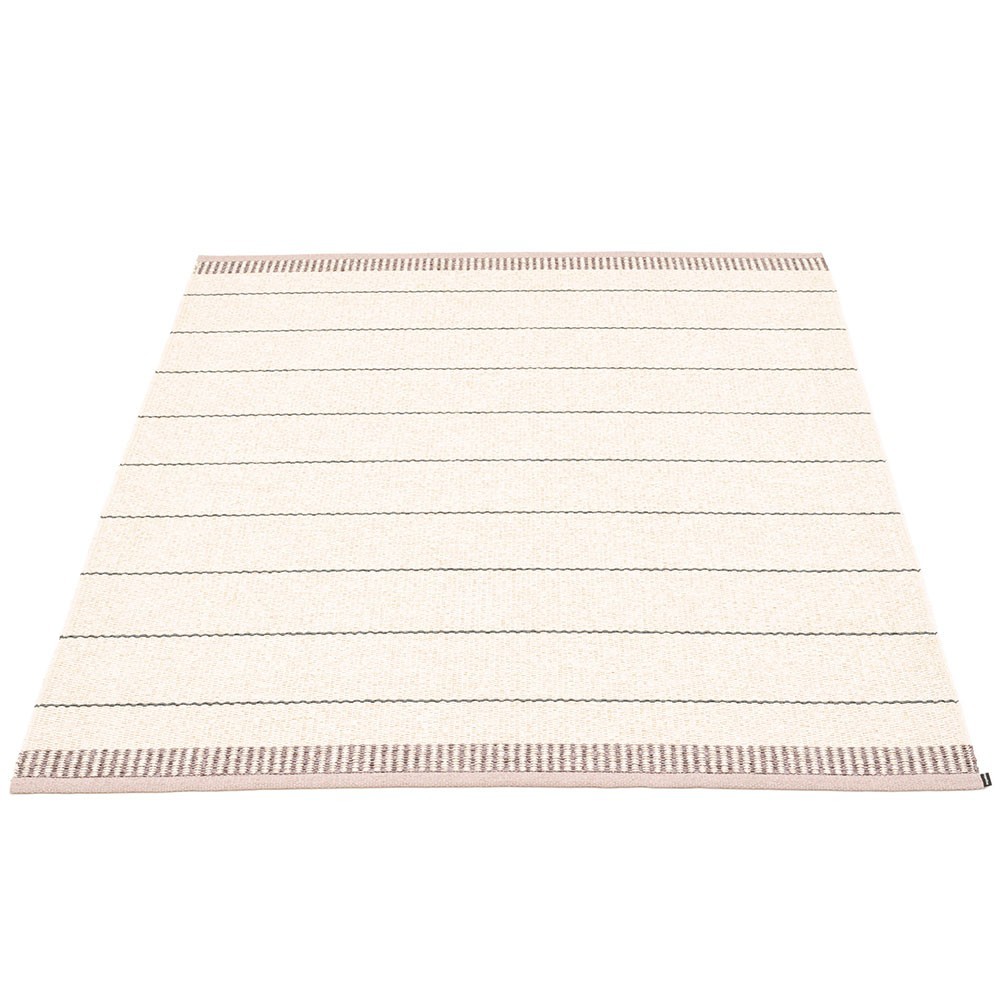 Produziert in Dalarna, Schweden. Auf einem traditionellen Webstuhl mit Holzshuttles gewebt. Eine sehr praktische und pflegeleichte PVC-Matte, hergestellt in Schweden. Gepresste Kunststoffbänder für mehr Festigkeit und Haltbarkeit des Produkts mit dem Pappelina-Logo an beiden Kanten.