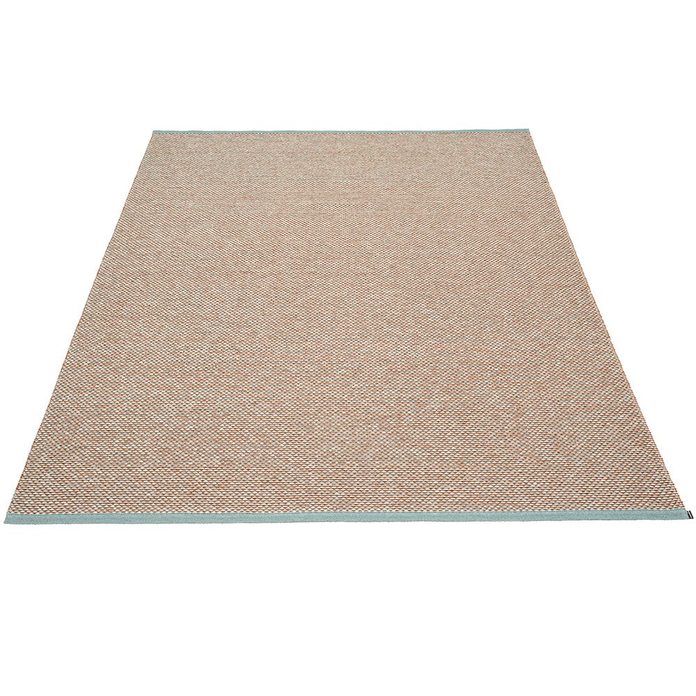 Produziert in Dalarna, Schweden. Auf einem traditionellen Webstuhl mit Holzshuttles gewebt. Eine sehr praktische und pflegeleichte PVC-Matte, hergestellt in Schweden. Gepresste Kunststoffbänder für mehr Festigkeit und Haltbarkeit des Produkts mit dem Pappelina-Logo an beiden Kanten.