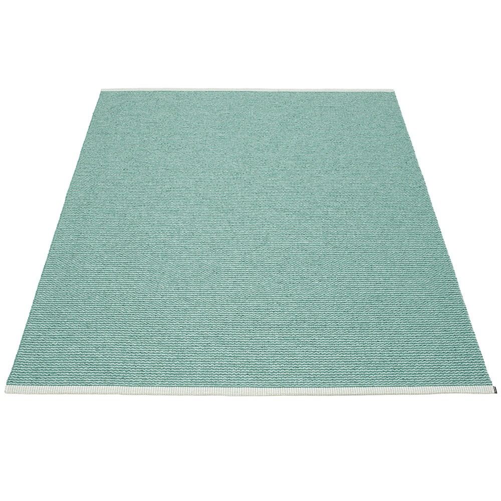 Produziert in Dalarna, Schweden. Auf einem traditionellen Webstuhl mit Holzshuttles gewebt. Eine sehr praktische und pflegeleichte PVC-Matte, hergestellt in Schweden. Gepresste Kunststoffbänder für mehr Festigkeit und Haltbarkeit des Produkts mit dem Pappelina-Logo an beiden Kanten.