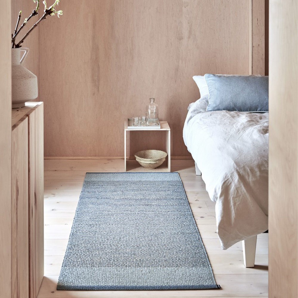 Der in Wildleder hergestellte Teppich Edit besteht aus Kunststoff undist für die Verwendung im Innen- und Außenbereich geeignet. Der Teppich wird von Gislaved Folie AB auf einem traditionellen Webstuhl aus phthalatfreien Kunststoffstreifen gewebt. Er ist in verschiedenen Farben und Größen erhältlich.