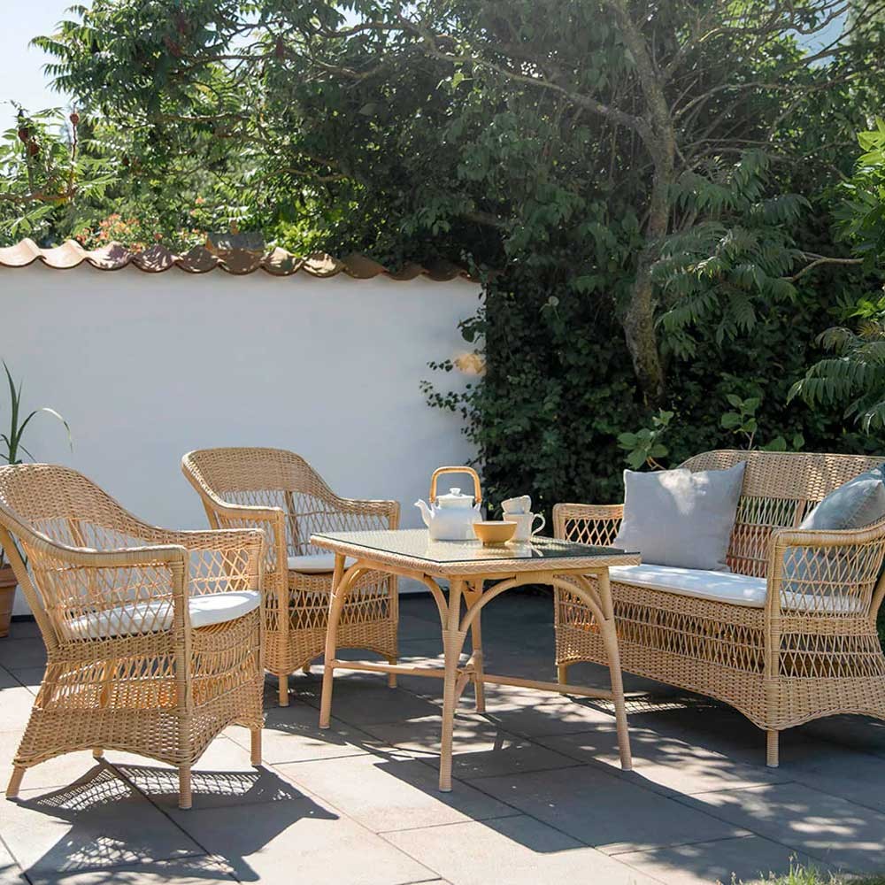 Der Couchtisch Victoria ist ein Outdoor-Couchtisch der Marke Sika Design. Er gehört zur Kollektion Georgia Garden und verbindet den englischen Kolonialstil mit dem traditionellen skandinavischen Stil. Der Tisch zeichnet sich durch seine schlanken Beine und seine Glasplatte aus und verleiht Ihrer Gartendekoration einen romantischen Touch. Um eine geschmackvolle Gartengarnitur zusammenzustellen, kombinieren Sie diesen rechteckigen Couchtisch mit den Sofas und Sesseln der Kollektion Georgia Garden. Dieser Tisch ist sehr vielseitig und lässt sich mit verschiedenen Outdoor-Möbelstilen kombinieren. Seine Wetterbeständigkeit macht ihn zu einem sehr praktischen und idealen Tisch für den Alltag.