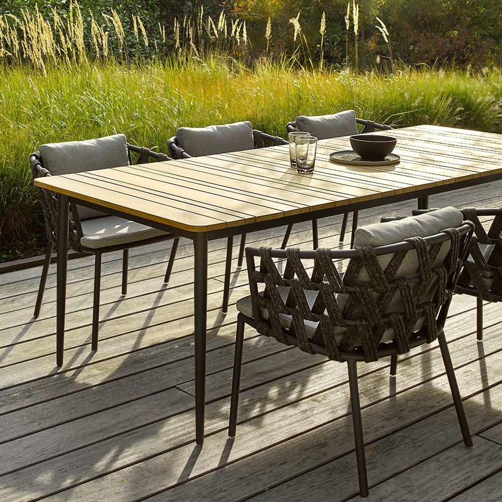 - Gestell aus pulverbeschichtetem Aluminium | Tischplatte aus Teakholz